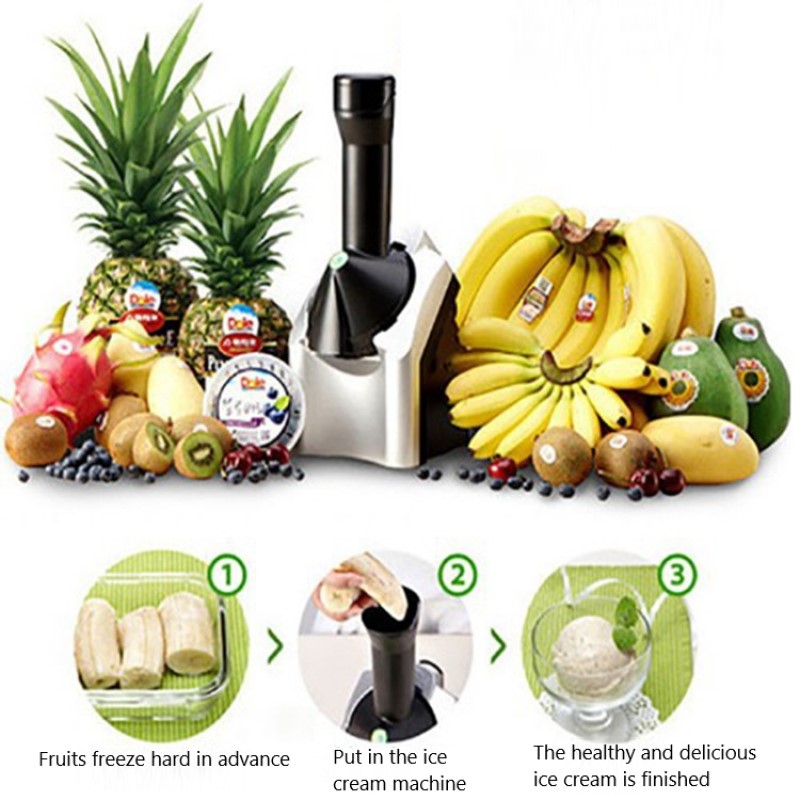 5.Simply insert the frozen banana or any fruit of your choice into the chute and push it down with a plunger to turn the frozen fruit into a dessert in seconds. It's simple and fun to make!