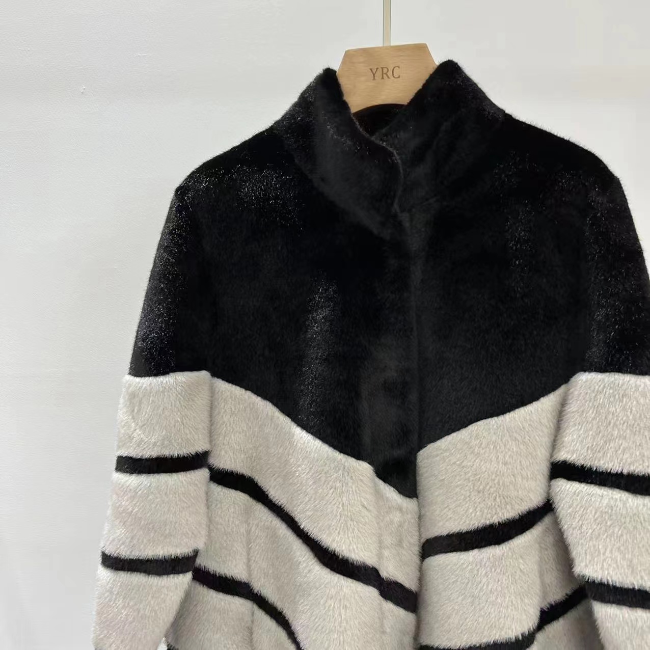 Imitation Fur Women's Coat Long Slim Fitting Contrast Stitching High Imitation Mink Stand Collar Coat Aging Comfort