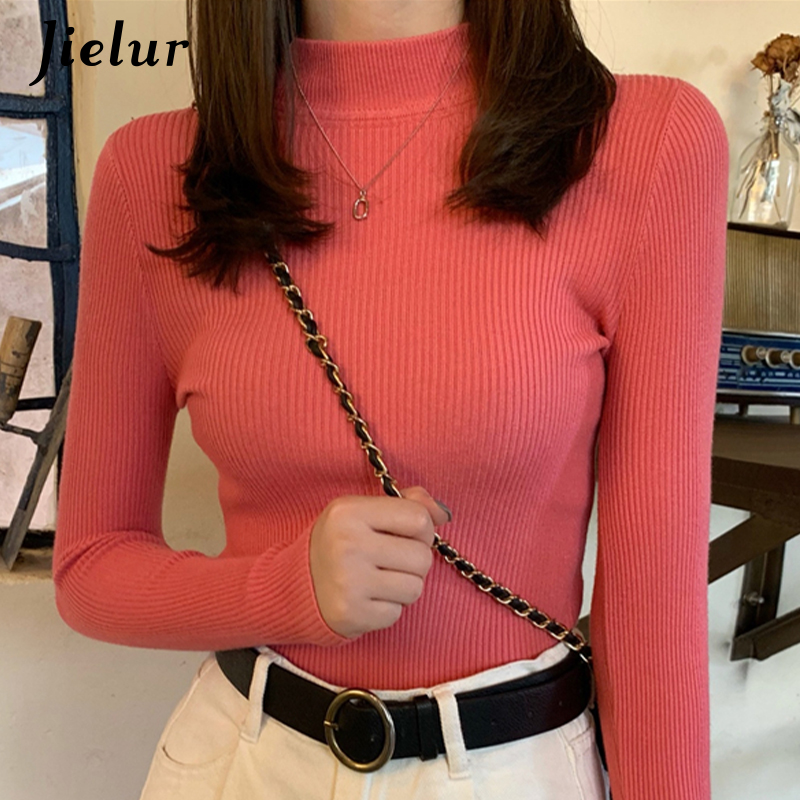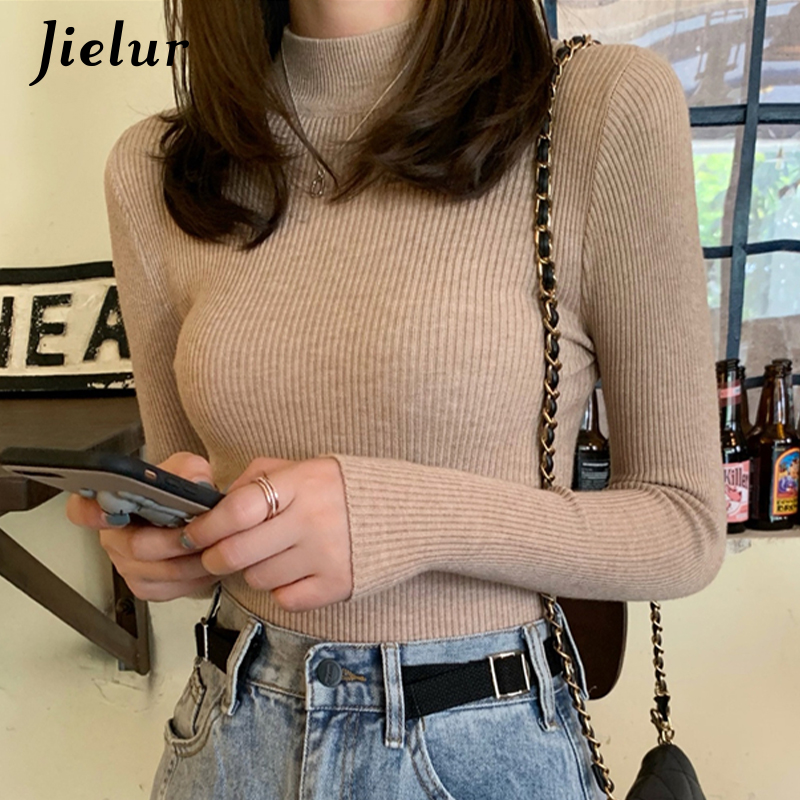 Jielur Solid Color Turtleneck Women Autumn Winter Knitted Sweaters Basic Primer Pullovers Sweater Slim-fit Pullover