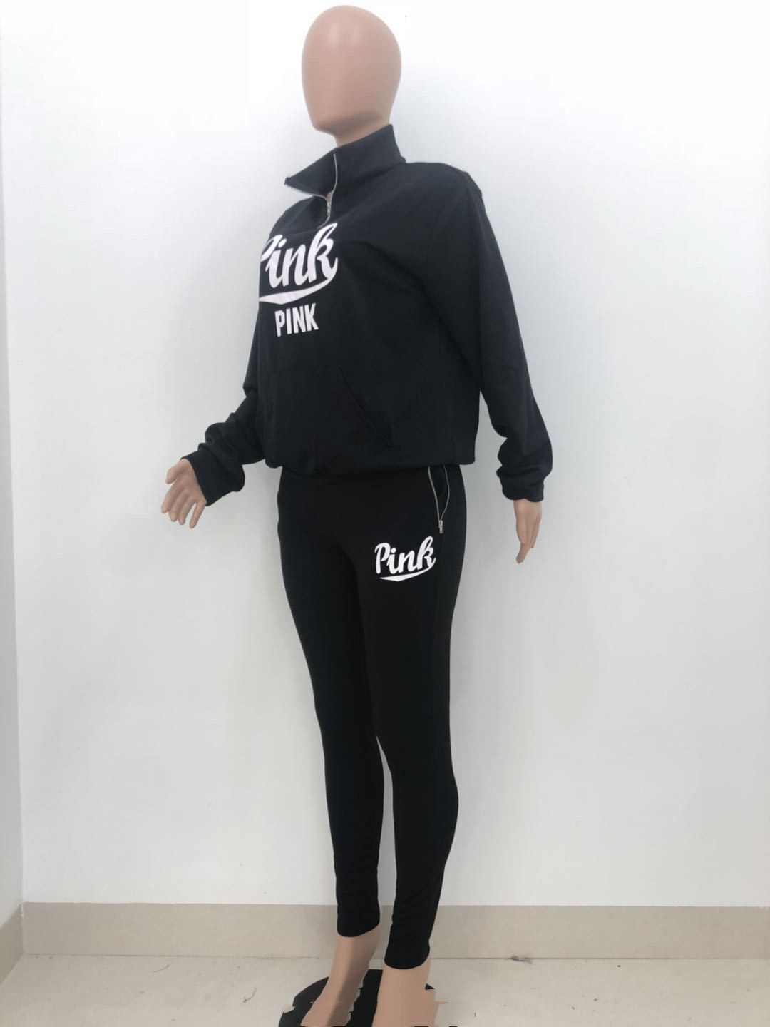 Joggers Gym Sports Workout Sweatsuit 2-Piece Sweat Sets Women Sweat Outfits Autumn Pink Printed Tracksuit Two Piece Joggeing Set