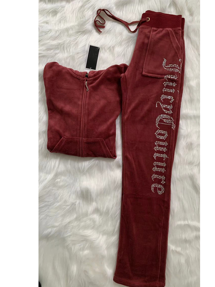 Juicy Tracksuit Women Juicy Apple Y2k Velvet Top And Pants Velour Sewing Suit Two-piece Set Pants Female Jogging Rhinestone Met