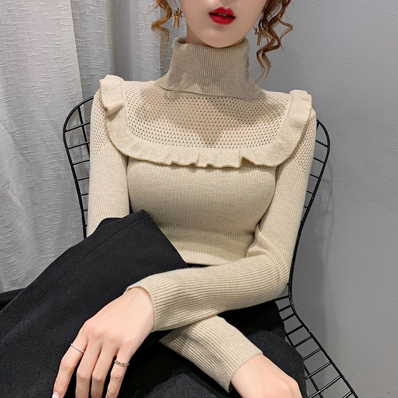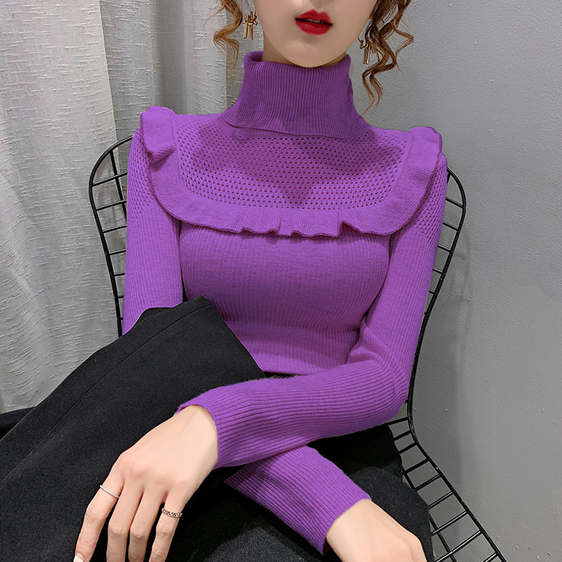 Ladies Turtleneck Sweater Auricular-Side Slim Knit Multi-Color Autumn And Winter Bottom Unlined