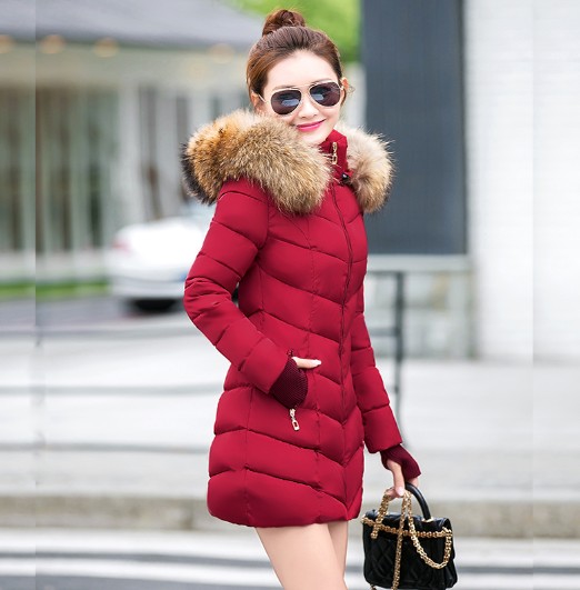 Long slim women parkas stylish overcoat down jacket female Detachable fur collar winter coat with zipper pockets