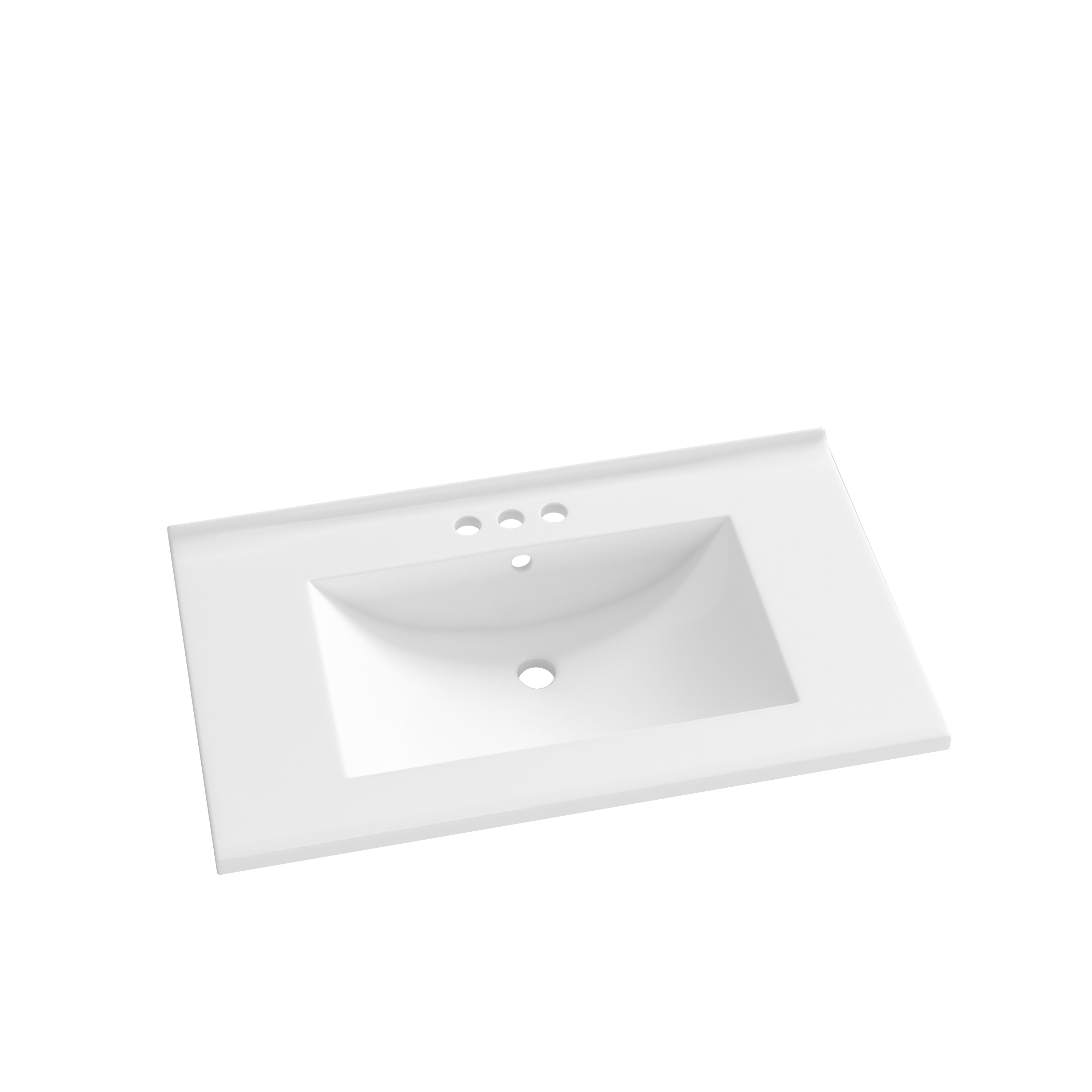 [ Three pre-drilled holes ] : Three pre-drilled holes make installing a 4” centerset faucet easy; Single mount with deck plate also works with this top