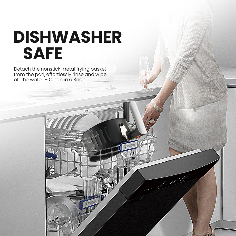 The electric fryer's coating design that does not easily stick to food makes the pan very easy to clean and can be washed directly in the dishwasher without the coating peeling or discoloring.