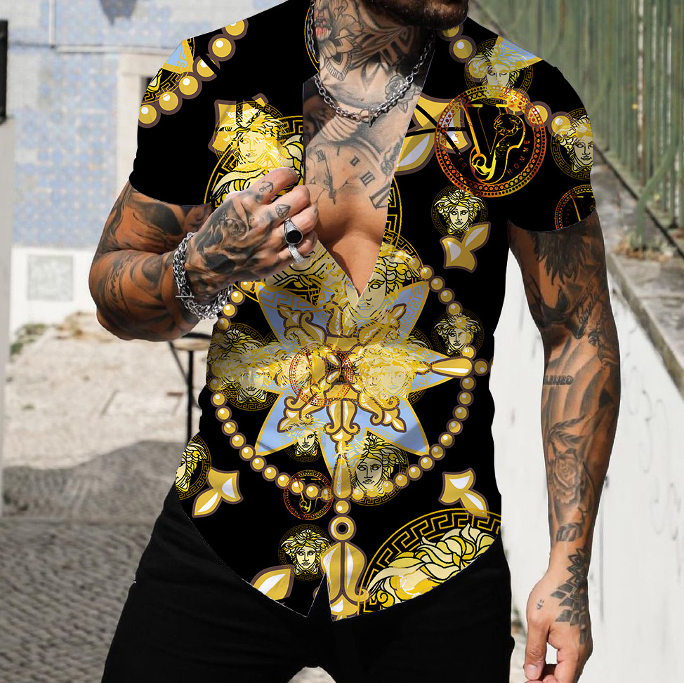 Mens Clothing Social Shirt Male Casual Shirts Letter Printed Chemise Streetwear Cardigan Short Sleeve Dress Shirt