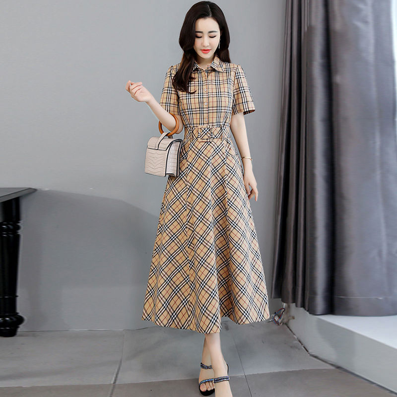 Mid-length plaid dress women's summer version waist-like temperament houndstooth bottoming skirt
