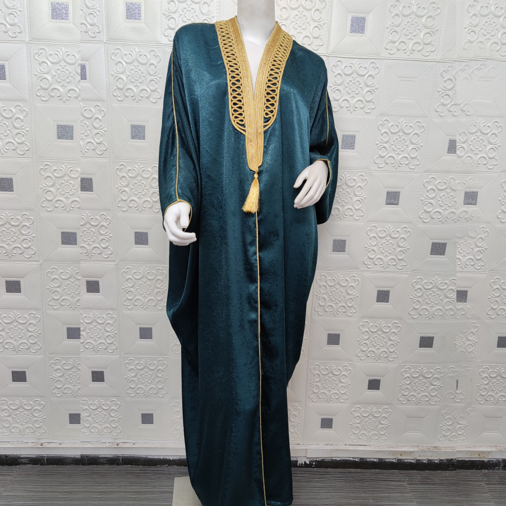 Moroccan Kaftan Dubai Open Abaya Dress for Women Gold Ribbon Batwing Sleeve Arabic Muslim Turkey Clothes France Velvet