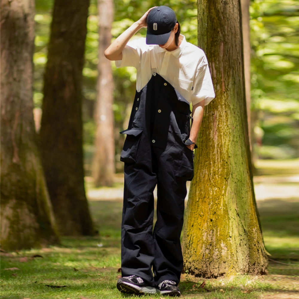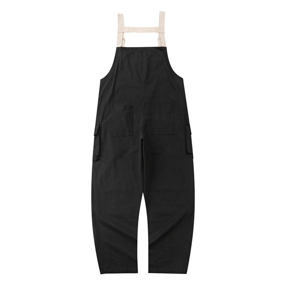 Multi-Pocket Overalls Mens Safari Style Contrast Paneled Dungarees Loose Casual Jumpsuit Pants Men Trousers