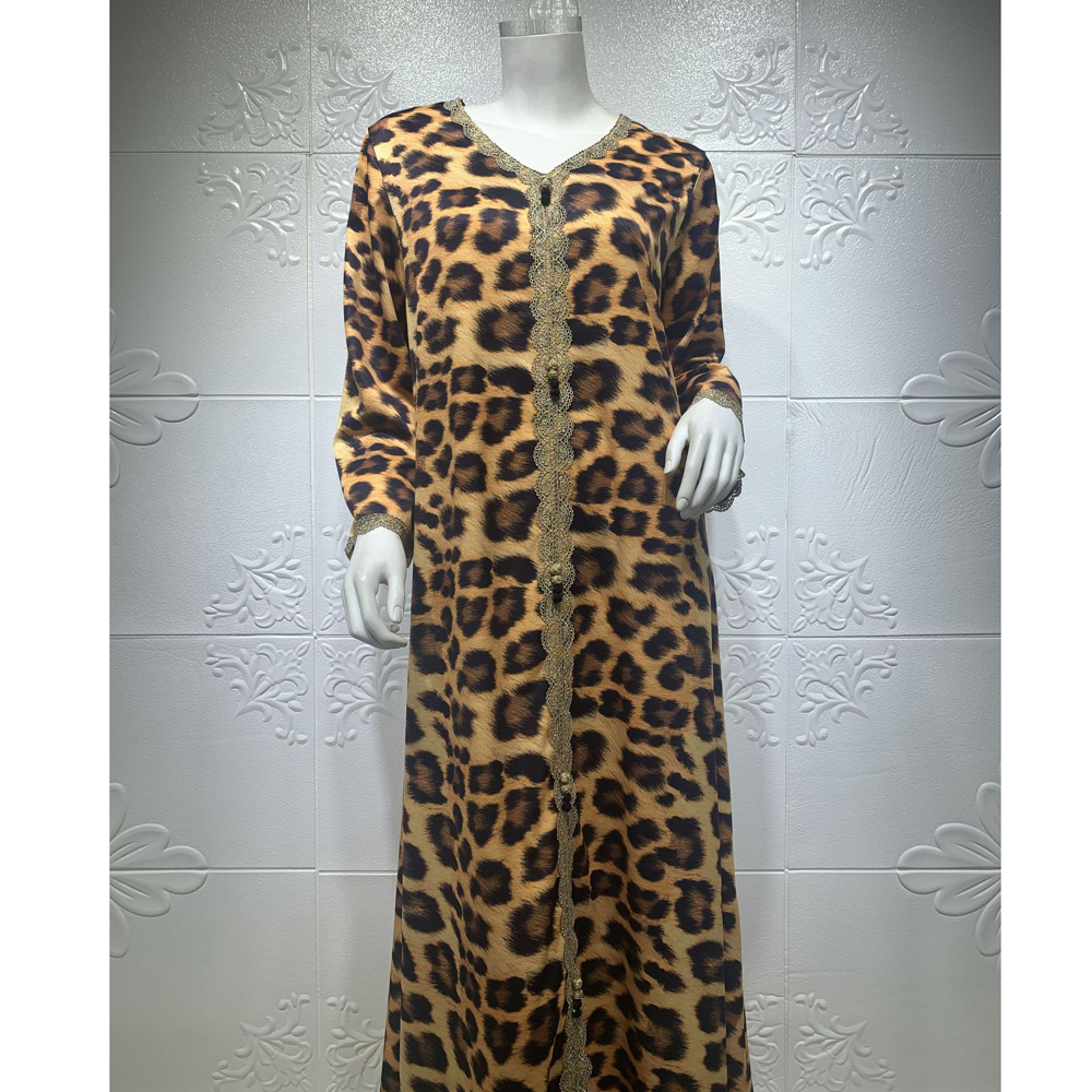 Muslim Ladies Leopard Robe Dress Middle East Dubai Arab Abaya Islamic Dress Tall Morocco Kaftan Turkish Long Skirt