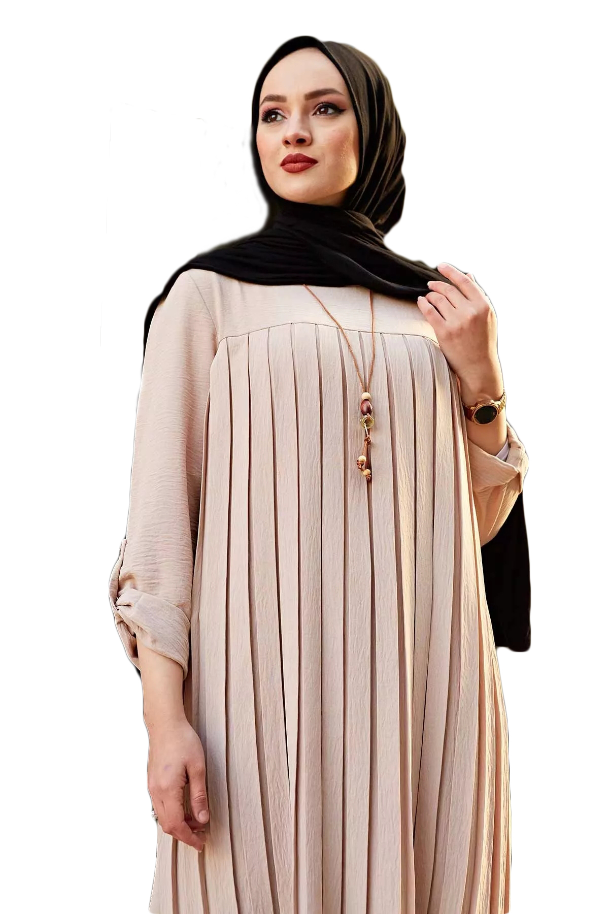 Muslim Woman Pleated Tunic Long Sleeve Muslim Tops Women Abaya Dubai Vintage Blouse Plaid Spring Autumn Warm Shirt Clothes Ladie