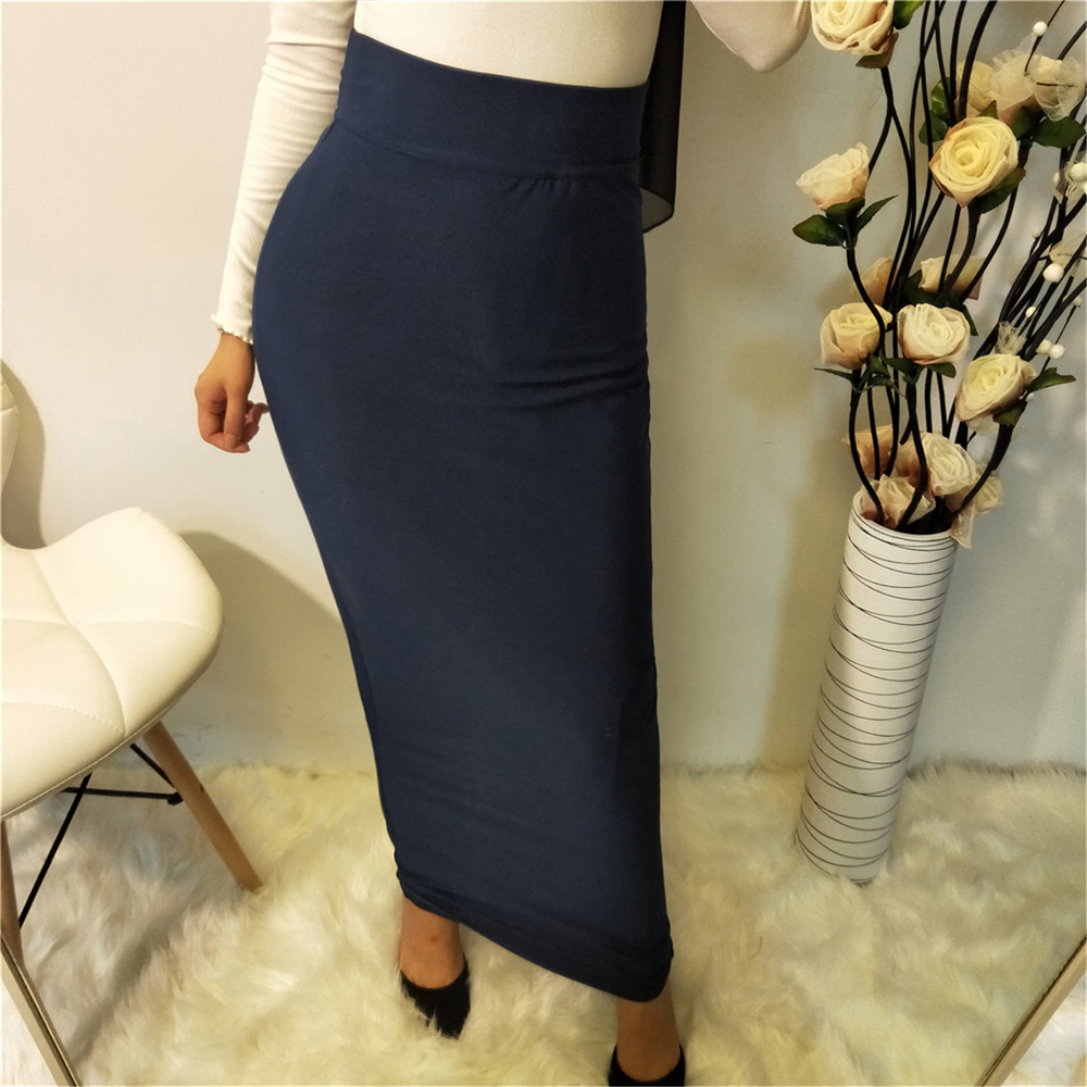 Muslim Women Skirts High Waist Pencil Bodycon Stretch Long Maxi Full Length Skirt Islamic Bottoms Dubai Abaya Kaftan Arab Gown