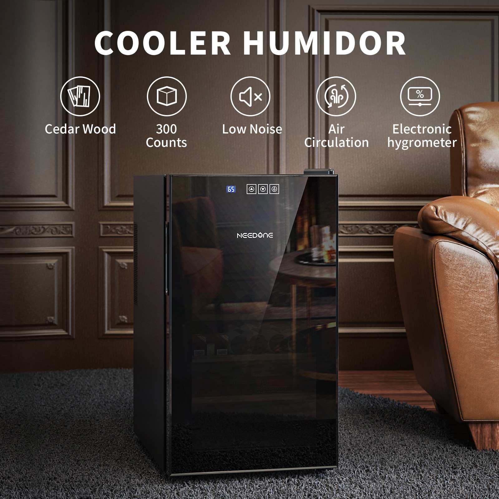 【Electronic Cooler Humidor】Temperature range of NEEDONE Clooer 54℉ to 74℉, which avoids the influence of the external environment on cabinet temperature and humidity, and provides a more suitable space for long-term storage.