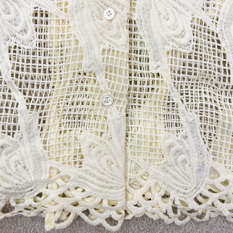 OROT@ Summer 2 Colors Polyester Hollow Lace Short Sleeve Lapel Daily Casual Cardigan Blouse