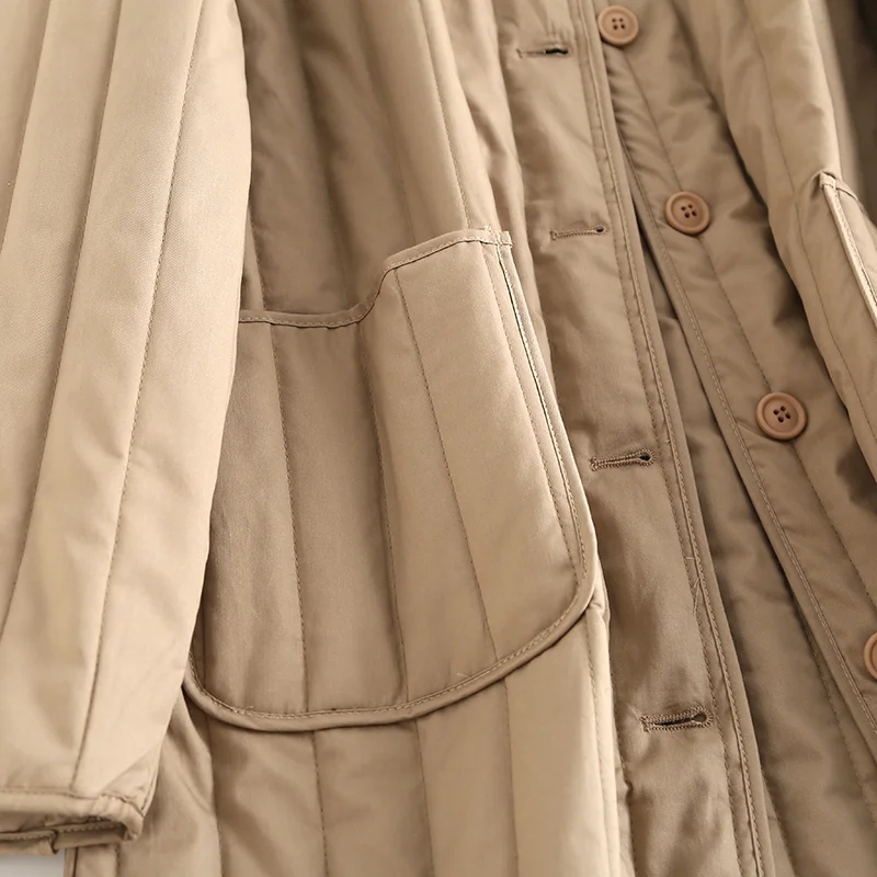 OneBling Women Casual Traf Quilted Coats Winter Warm Thick Striped Padded Jacket Pockets Mid Length Loose Long Parkas