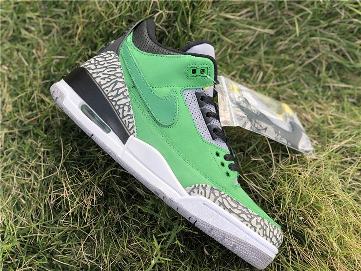PK AIR JORDAN 3 OREGON BLACK DARK GREY GREEN 3M REFLECTIVE