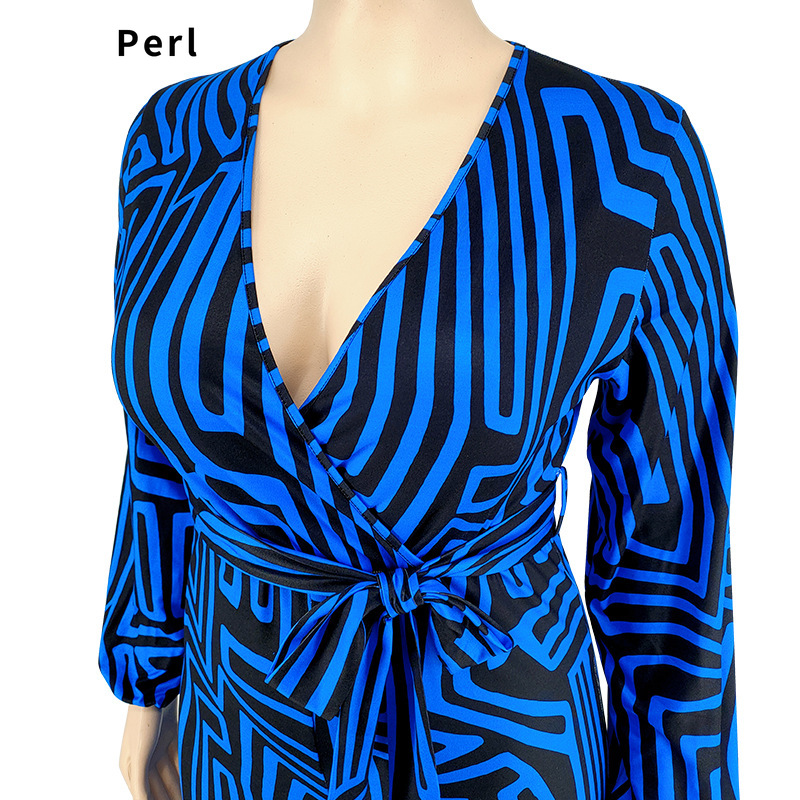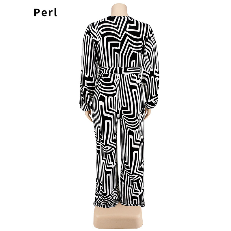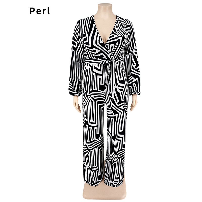 Perl Loose Full Sleeve Jumpsuit for Women Plus Size Outfit V-neck Romper Wide Leg Overall One Piece Clothes Mono De Talla Grande
