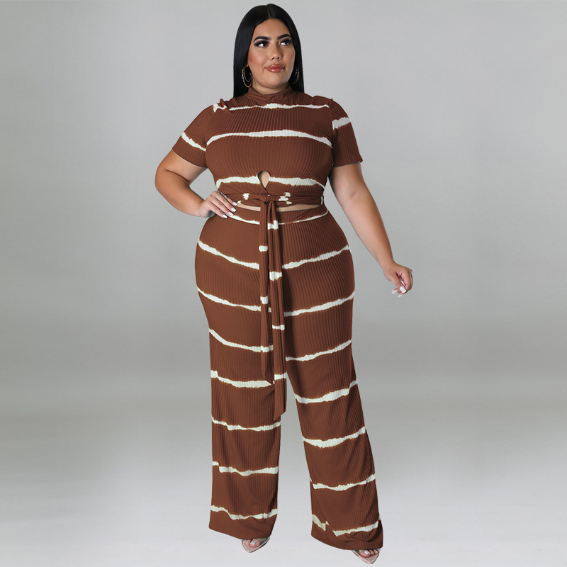 Perl Stripe Plus Size Two Piece Sets Short Loose Women Summer Outfits Casual Female Clothing Matching Tracksuit Xl-5xl