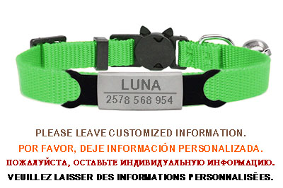 Item:Personalized IDHigh quality Nylon adjustable Safety collar for cats small dogs