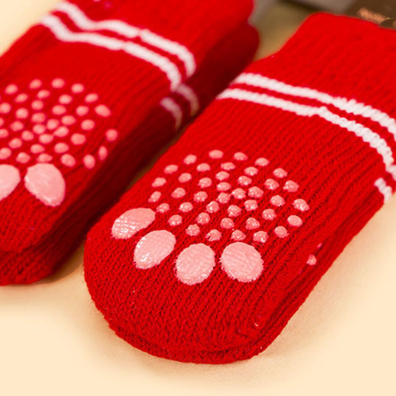 4pcs Warm Puppy Dog Shoes Soft Pet Knits Socks Cute Cartoon Anti Slip Socks