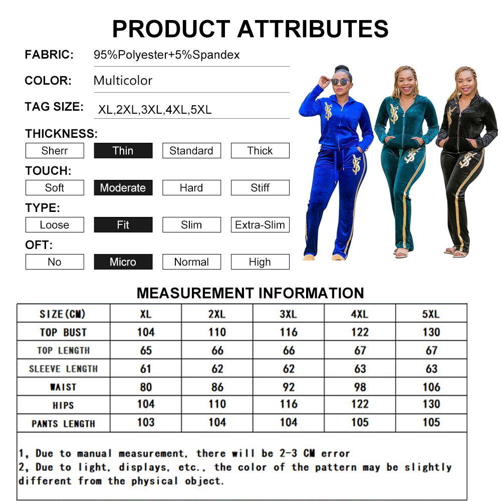 Plus Size Women Two Piece Sets Tops + Pants Matching Set Large Size Velvet Patchwork Women Tracksuit chandals mujer 5XL
