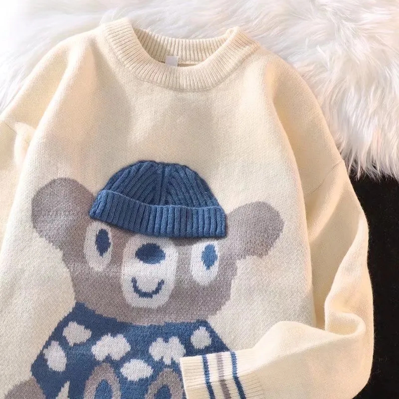 Pullover Femamle Winter Autumn Oversized Knitted Sweater Women Long Sleeve Embroidery Cartoon Thicken Pullovers Jumper Tops