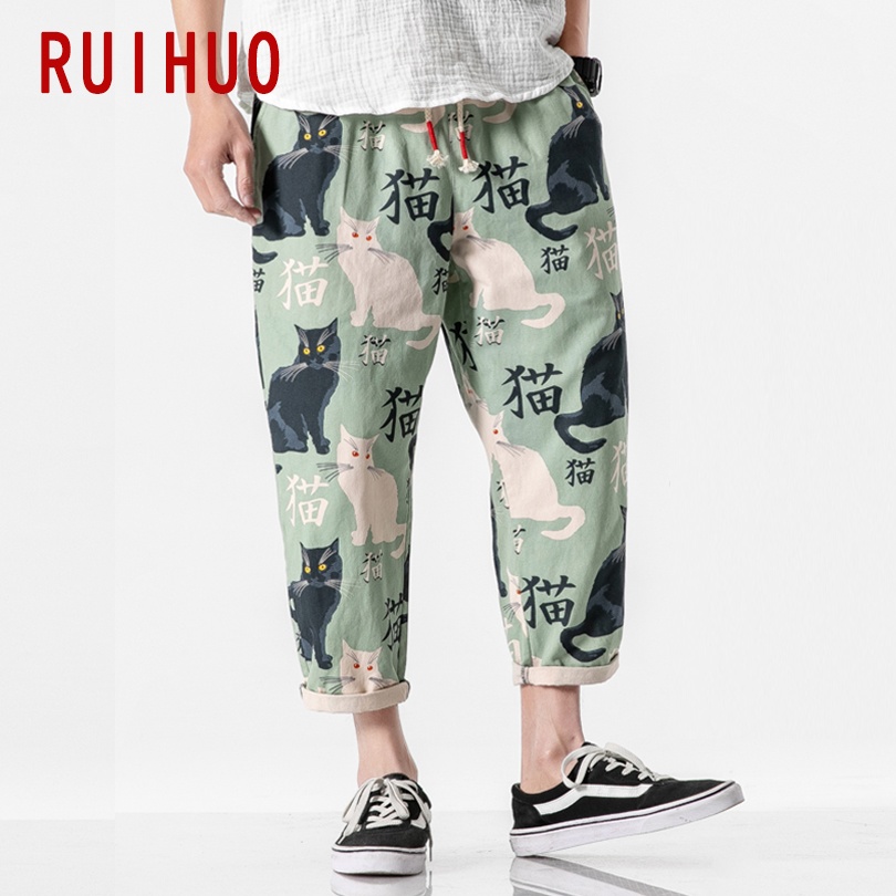 RUIHUO 2022 New Cat Print Harem Pants Men Trousers Casual Baggy Pants Men Ankle-Length Sweatpants Hip Hop Streetwear M-5XL