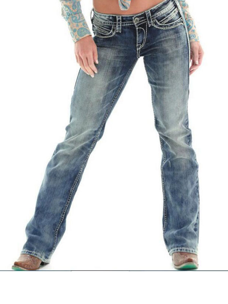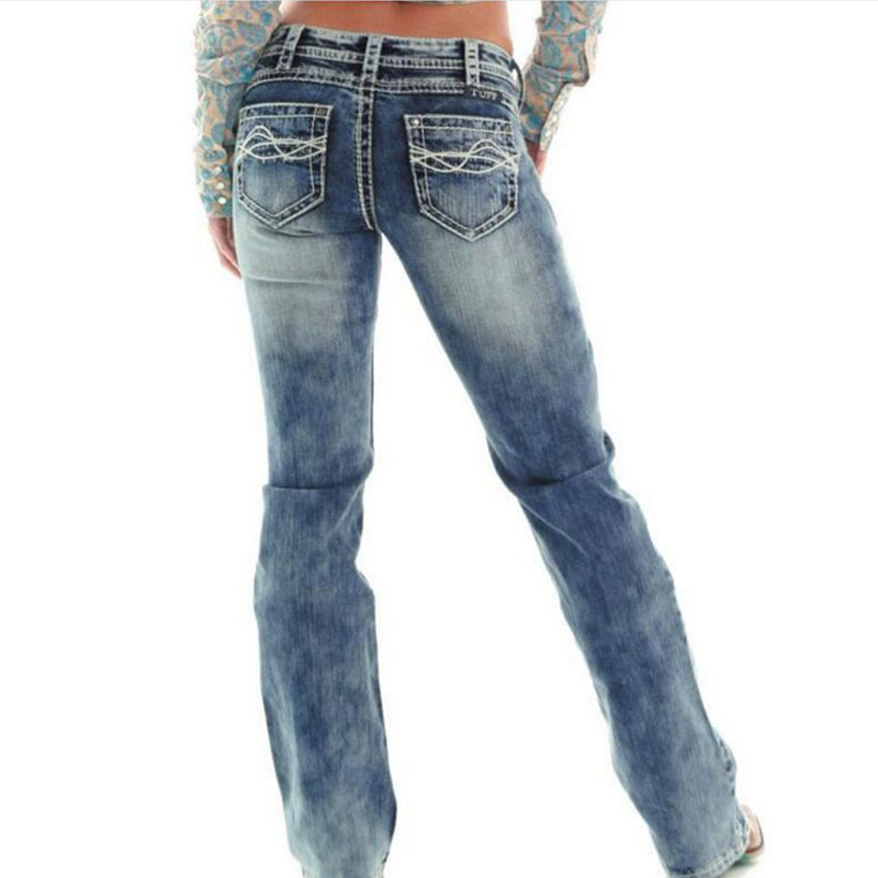 Retro Jeans Woman Straight Denim Pencil Jeans Women Mid-Waist Pockets Casual Pants Female Elastic Trousers Female Cowboy Jeans