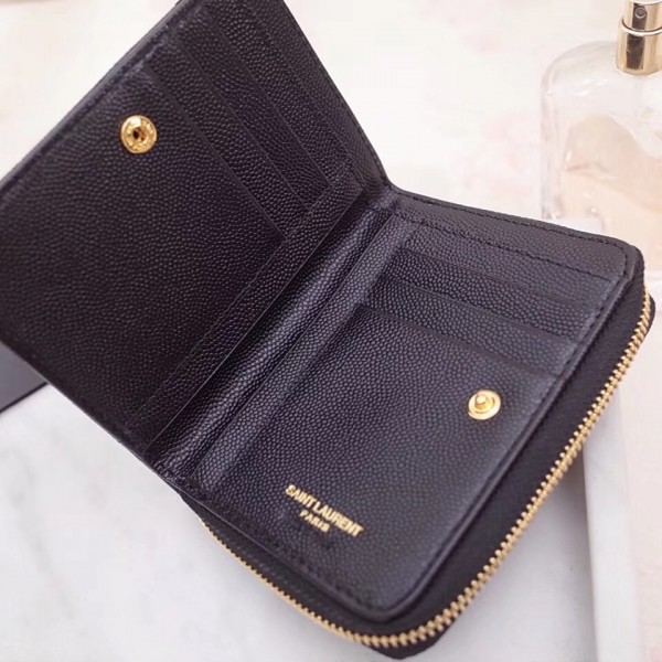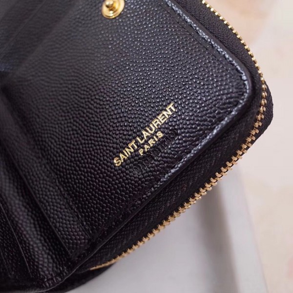 It’s definitely not unusual for Saint Laurent to make its YSL interlocking monogram the centre of most its designs, and the brand sticks to its winning formula with the monogram compact zip around wallet. Trimmed with gold-tone hardware its compact profile is made from grain de poudre embossed leather with chevron quilting. It opens to reveal a neatly designed space for cash and cards, while a roomy zipped compartment is perfect for loose change.