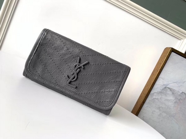 Saint Laurent Niki Large Wallet In Storm Crinkled Vintage Leather