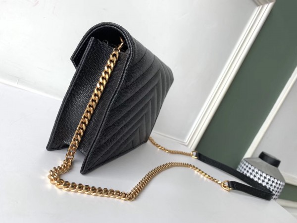 Saint Laurent WOC Envelope Chain Wallet In Black Leather