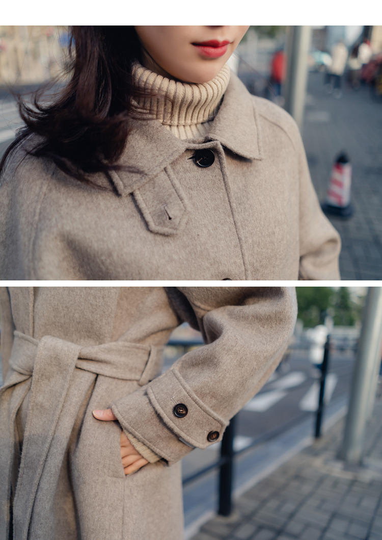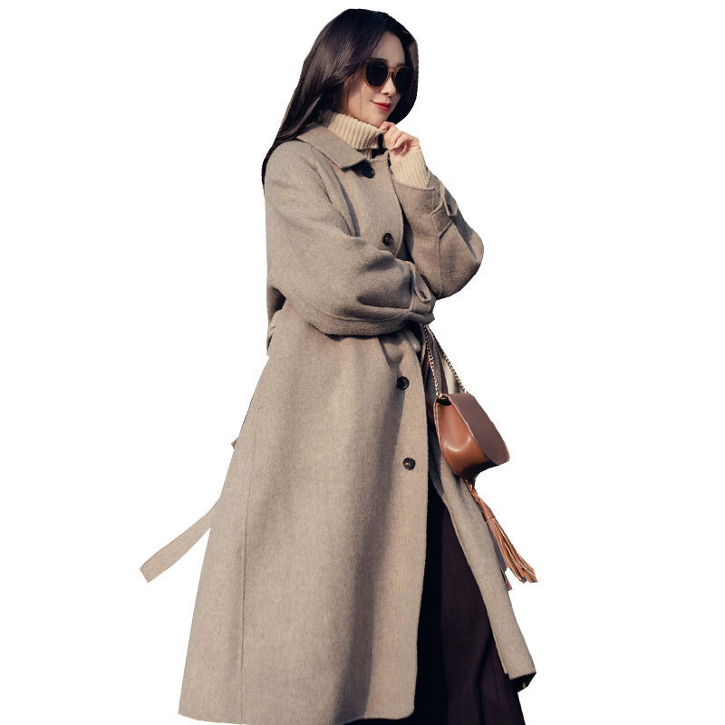 Single Breasted Turn-down Collar Coat And Jacket England Style Sashes Women Long Cashmer Coat Loose Solid Women's Woolen Jacket