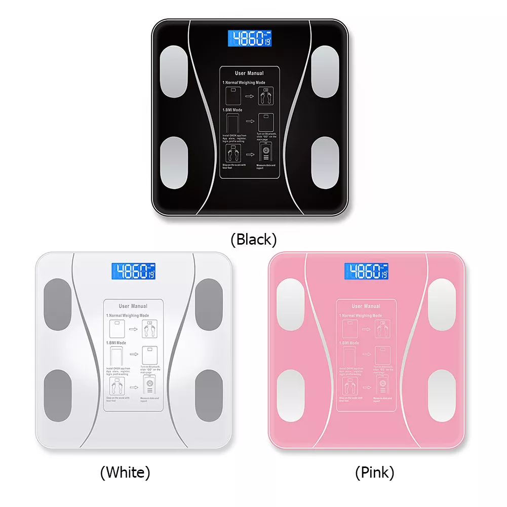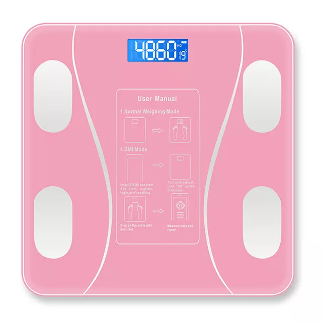 Feature: Measure multiple body data and master all body changes Intelligent sensing, which is called automatic power on and automatic power off R10 anti-collision rounded corners, anti-slip and anti-rollover Sensing indoor temperature, Bluetooth-compatible APP one click connection. Specification: Scale frame material: ABS plastic base Panel material: explosion-proof tempered glass Product size: 260*260*23mm/10.23*10.23*0.9in Display size: 58*23mm/2.3*0.9in Display mode: LCD HD blue screen display Supply method: battery type 2*AAA (not included) Weighing range: 0.2-180kg Display unit: kg/lb/st conversion Sensor: highly sensitive sensor Additional functions: temperature, power display, Bluetooth-compatible function Color: Black, White, Pink Note: Due to the different monitor and light effect, the actual color of the item might be slightly different from the color showed on the pictures. Thank you! Please allow 1-2cm measuring deviation due to manual measurement.