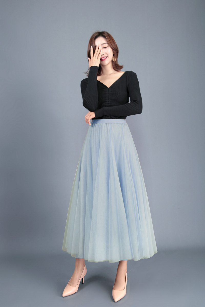 Spring Big Swing Puffy Ankle Long Skirt High Waist Slim Fairy Skirt Mesh Skirt A-line Skirt Harajuku Vintage Y2k Clothes