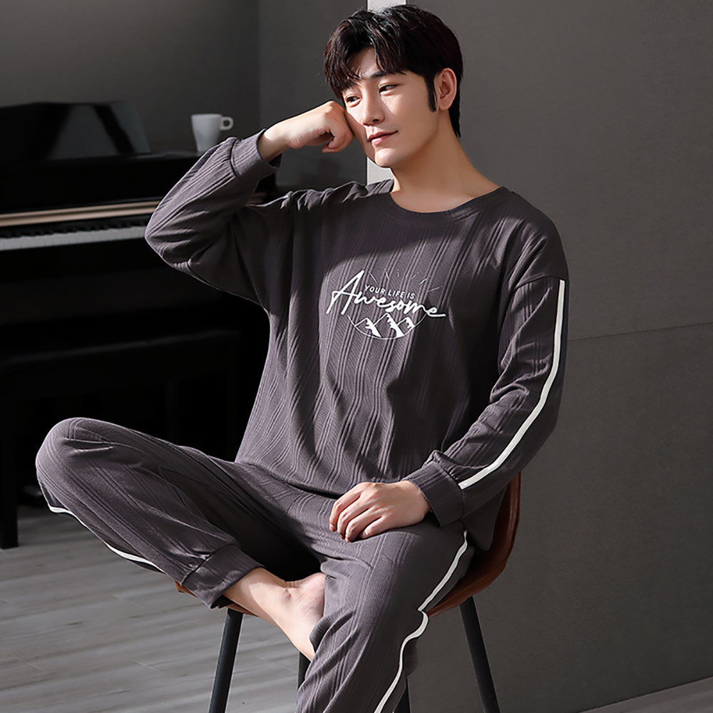 Spring Summer Male Long Sleeve Pajama Sets Casual Striped Lounge Set Comfortable Soft Sleepwear Pijama Plus Size Pajamas for Men