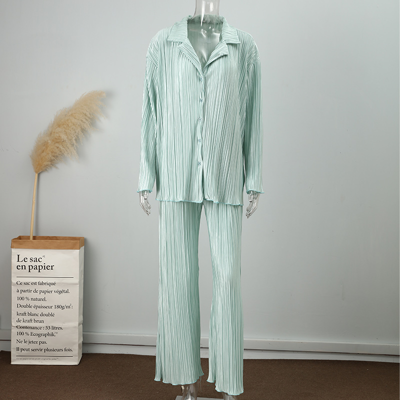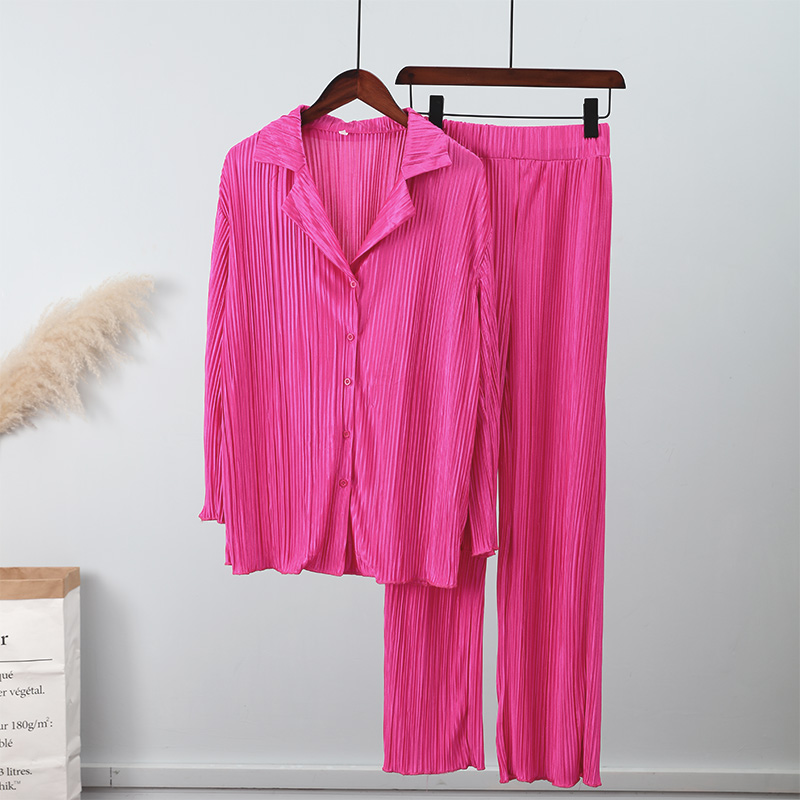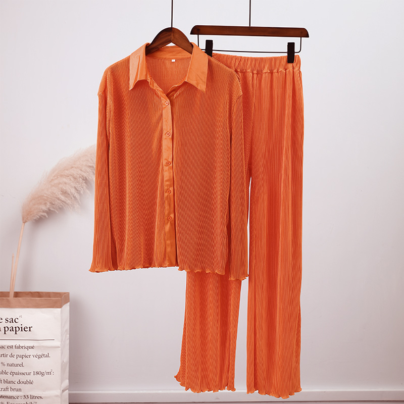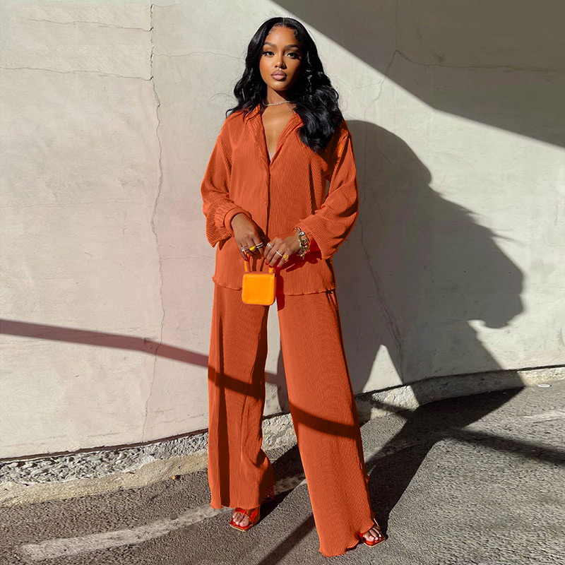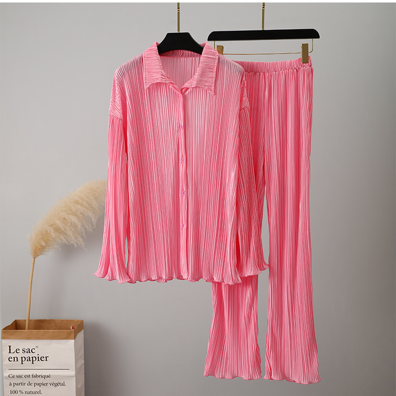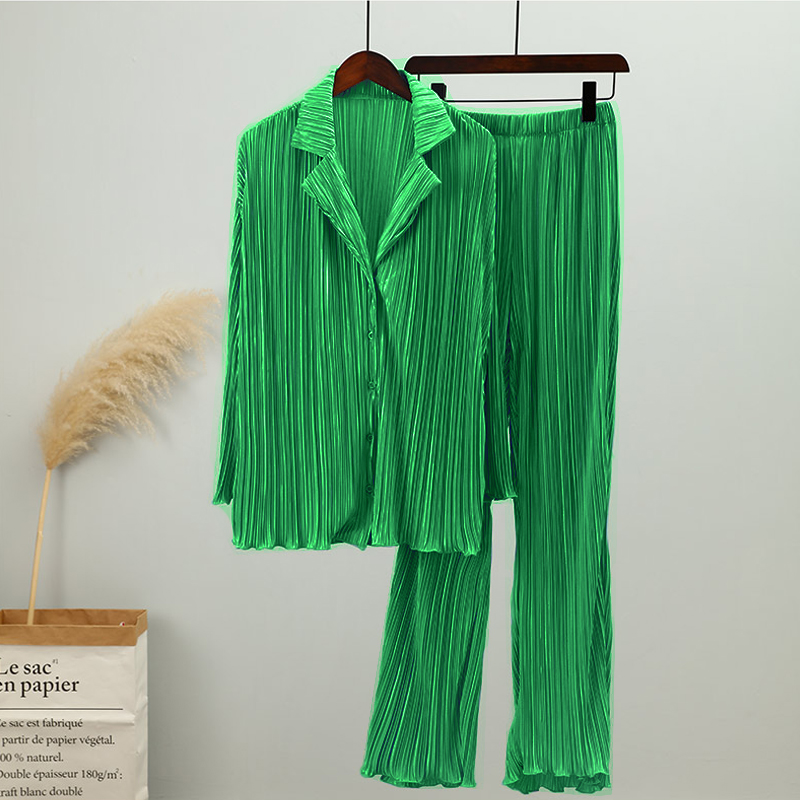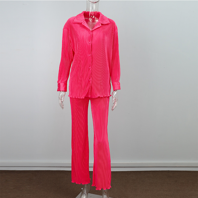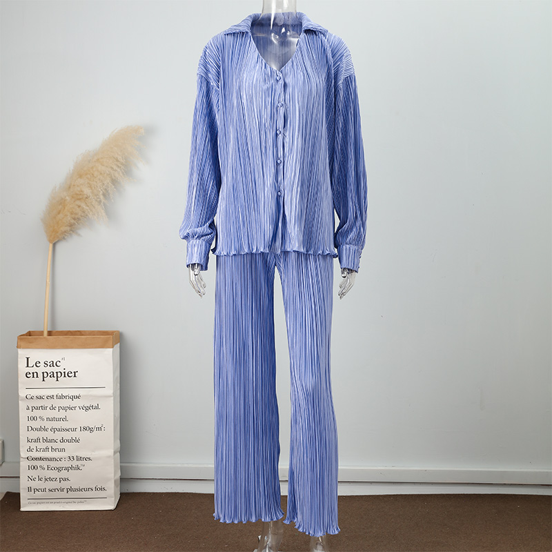 Spring Women's Shirt Pleated Two Piece Set Loose High Waist Wide Leg Pants Suit Casual Elegant Office Ladies Female Outfit