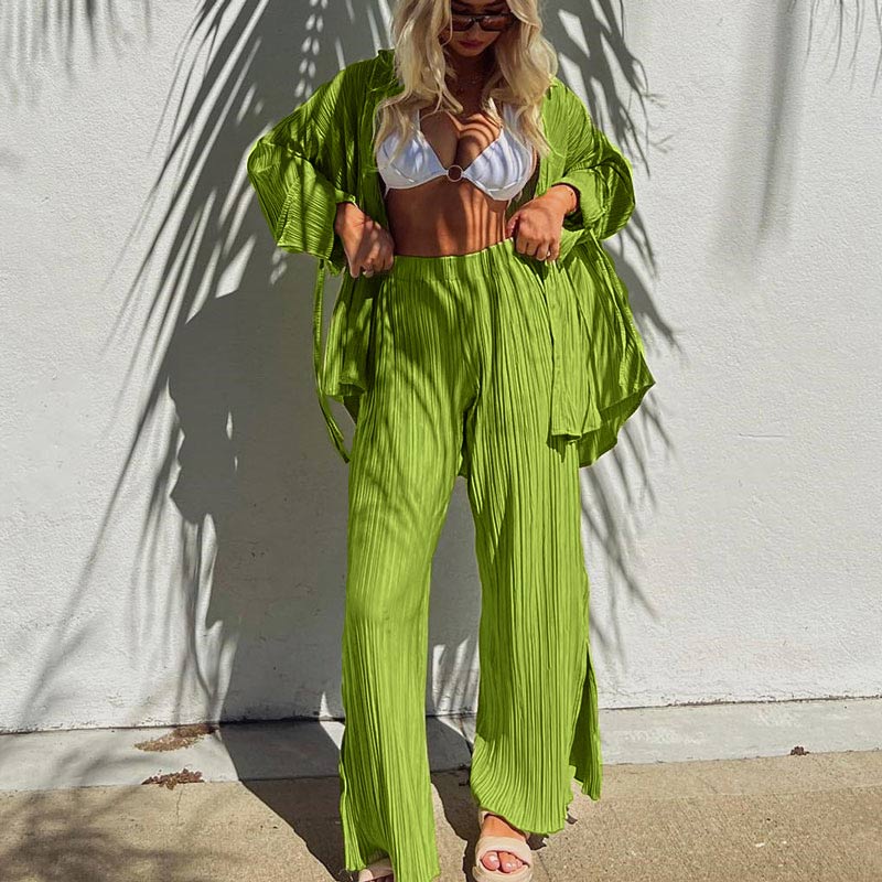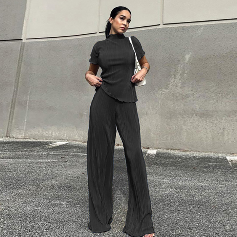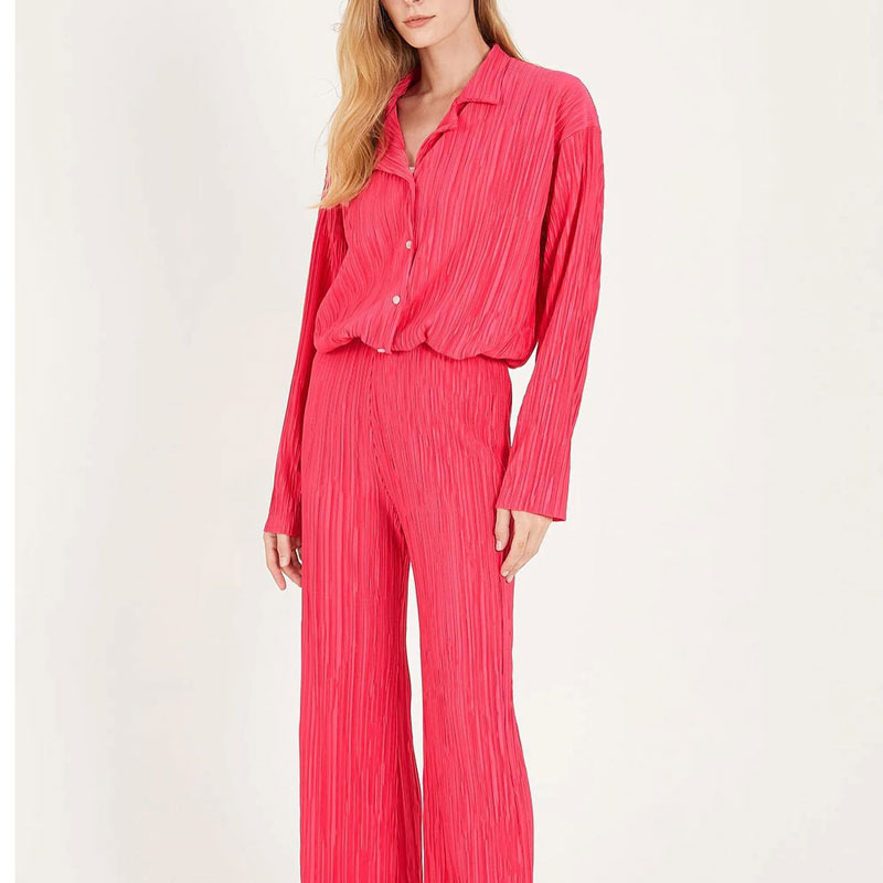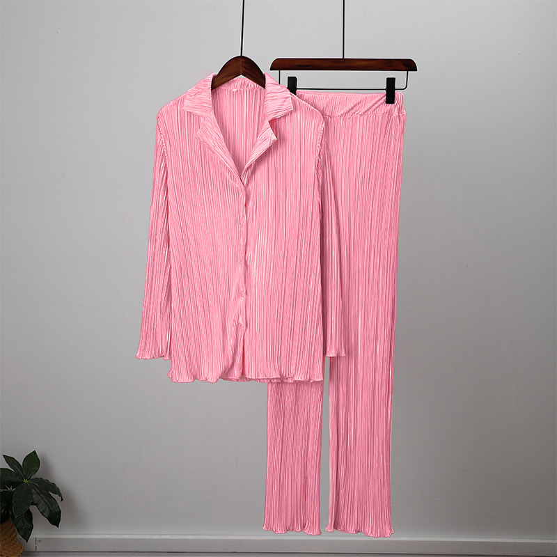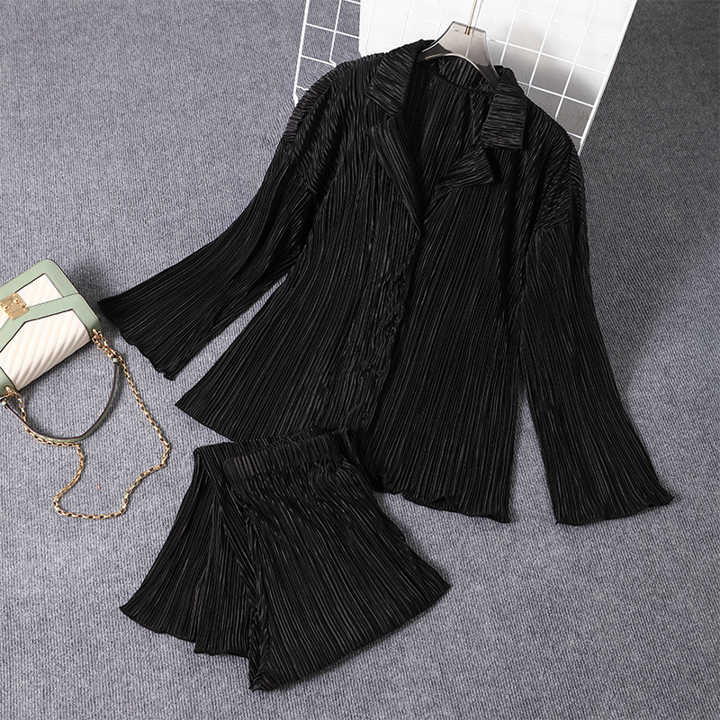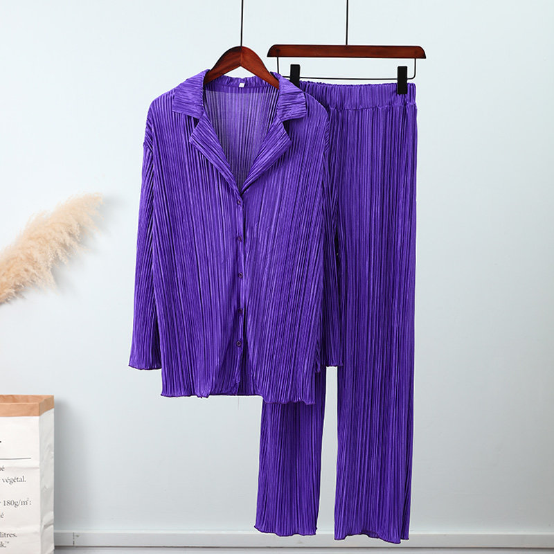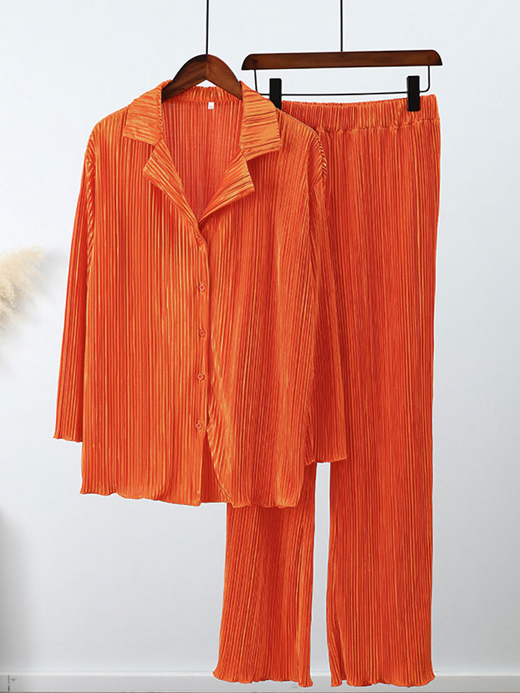 Spring Women's Shirt Pleated Two Piece Set Loose High Waist Wide Leg Pants Suit Casual Elegant Office Ladies Female Outfit