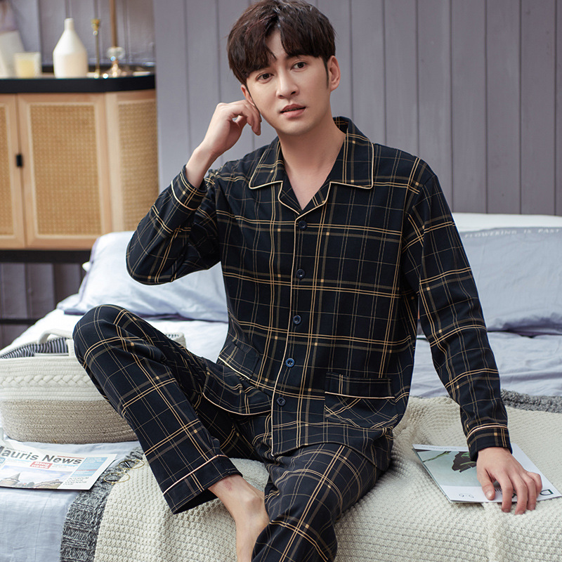 Spring autumn Cotton Pajamas Sets For Men Plaid Sleepwear Suit Casual Home Clothes Pijamas Hombre Loungewear Plus Size 4XL