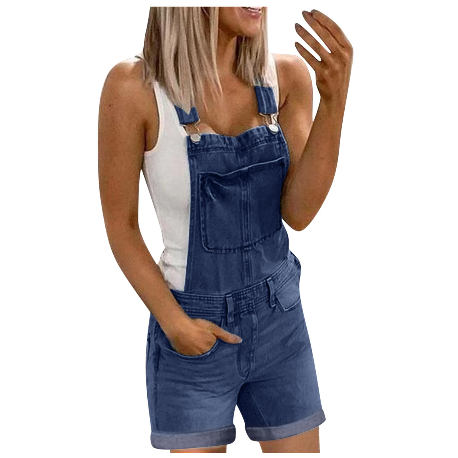 Summer Women's Washed Denim Bib Pants Sexy Long Rompers Bib Pants Jumpsuits Cowgirl Overalls Short Jeans Pants for Women