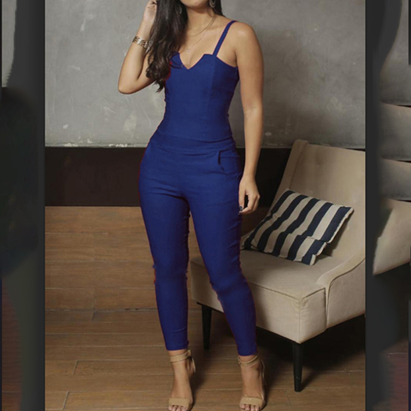 Summer jumpsuit Ladies Sling sleeveless Black Sexy Jumpsuit Fashion V-neck Cloth party Casual T-shirt