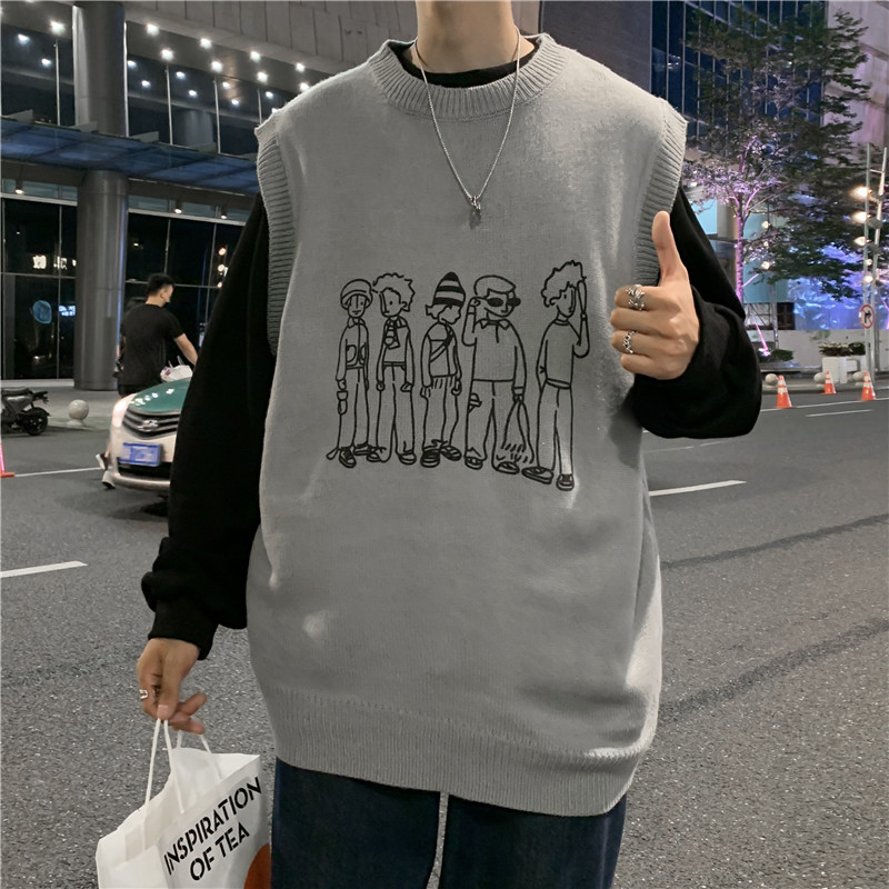 Sweater Vest Men Round Neck Sleeveless Sweaters Loose Oversize Preppy College Males All-match Knitwear Clothing Spring Daily