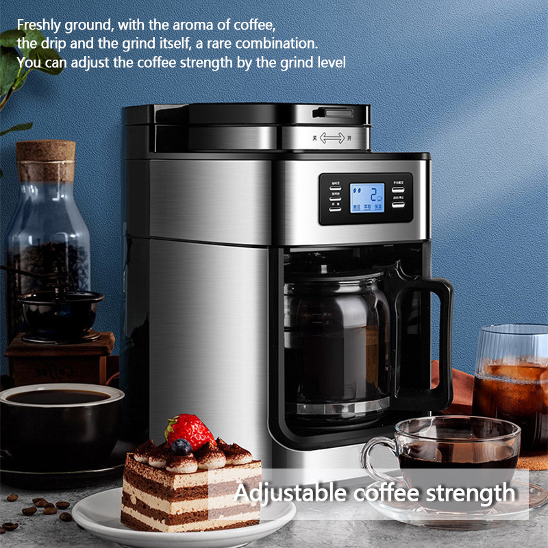 TABELL Coffee Maker Machine 2 In1 Automatic Coffee Machine Drip LED-Display Home Electric Bean Grinder Keep Warm Espresso