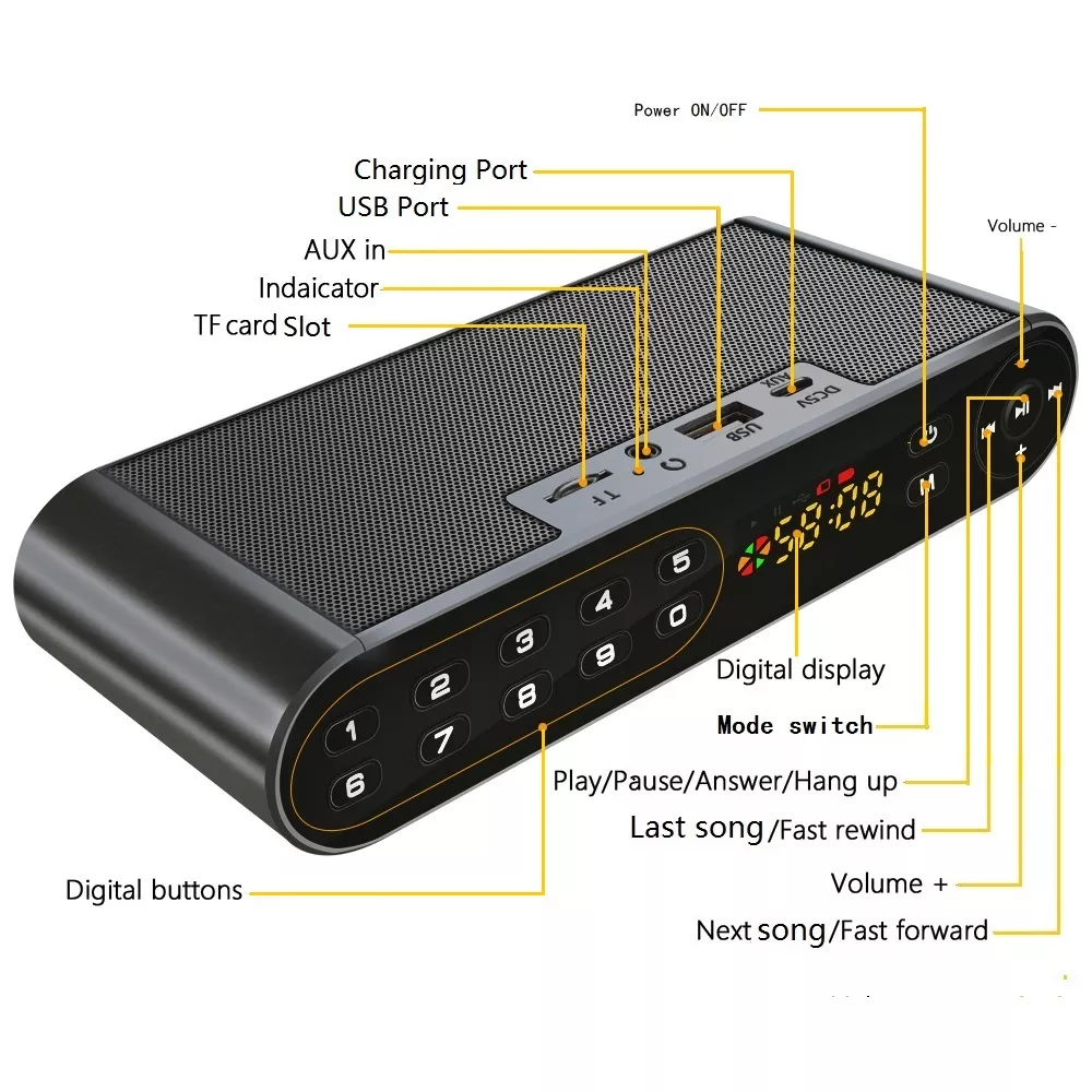 Function: Bluetooth, handfree phone call, AUX in, TF card/U-disk, FM radio