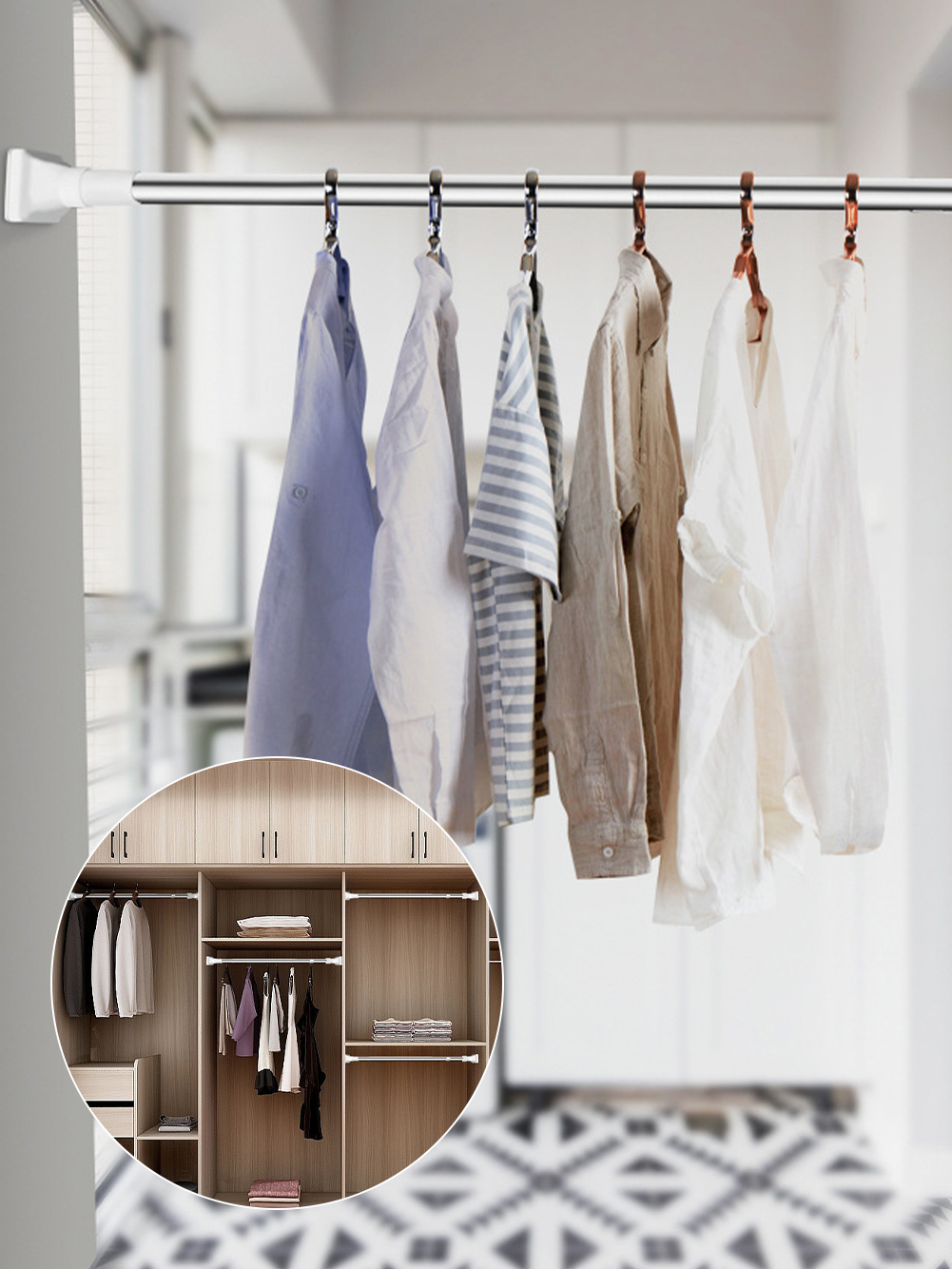 Telescopic Clothing Rod Punch-free Adjustable Shower Curtain Rods And Accessories Extendable Stainless Steel Simple Support Rod