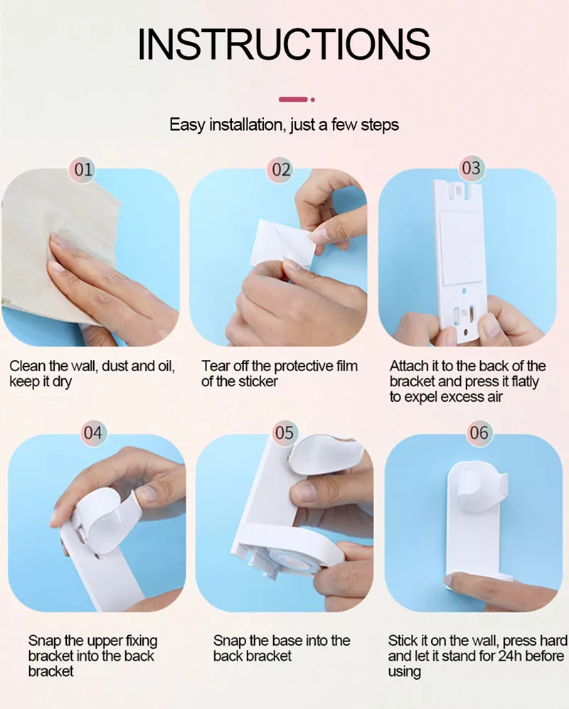 1. Safety and environmental protection: crystal clear glue, strong adhesive, high load bearing, wall adhesive without residue, not easy to fall, the body is made of food-grade ABS material.