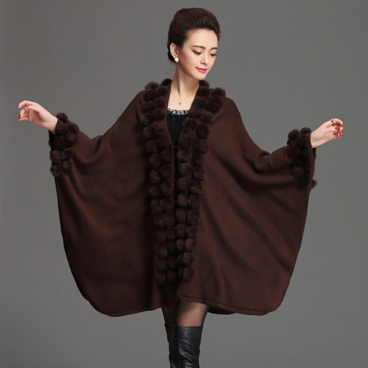 Trend Women Rabbit Fur Poncho Shawl Coat Long Knit Cashmere Cape Fur Sweater Pashmina Autumn Winter New