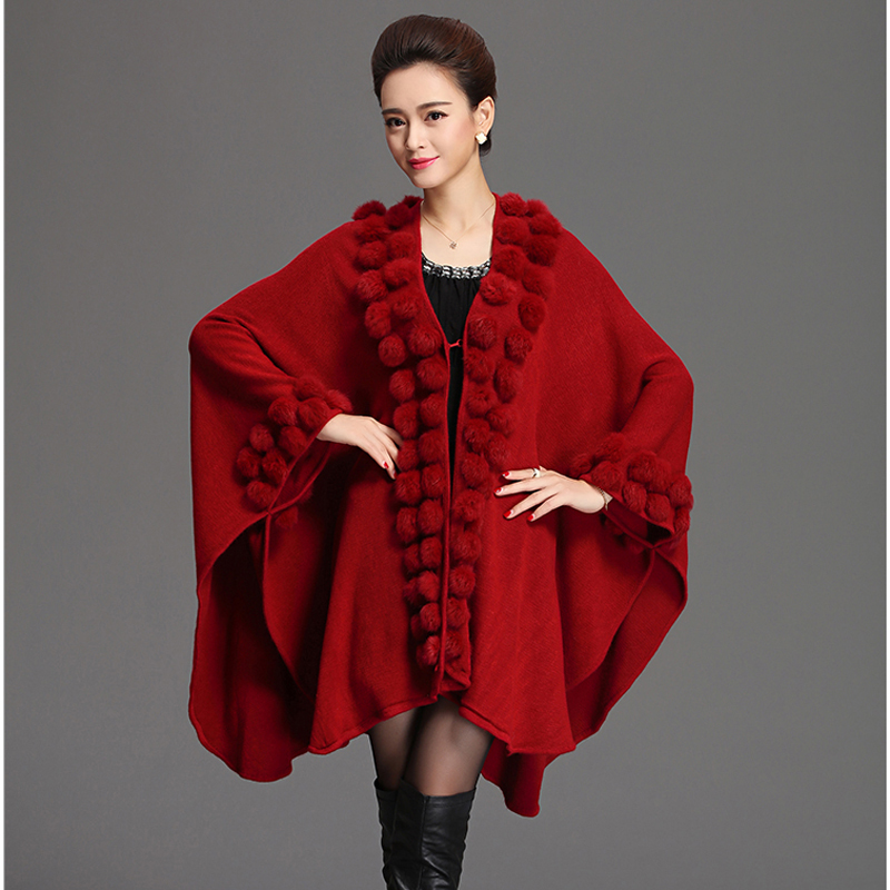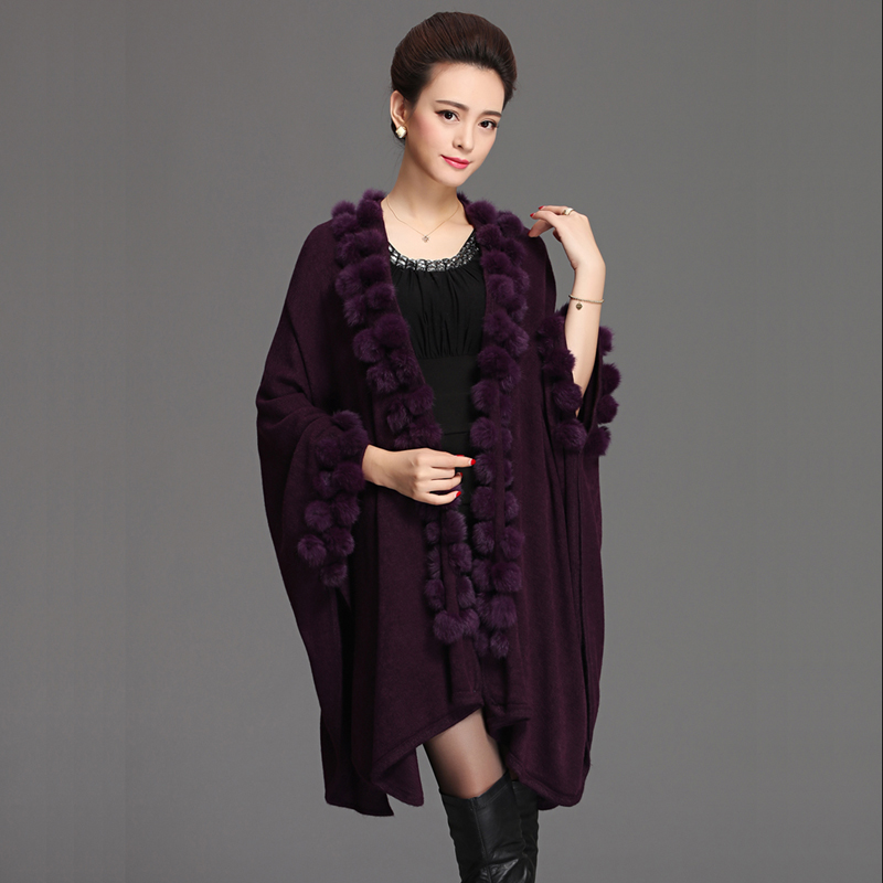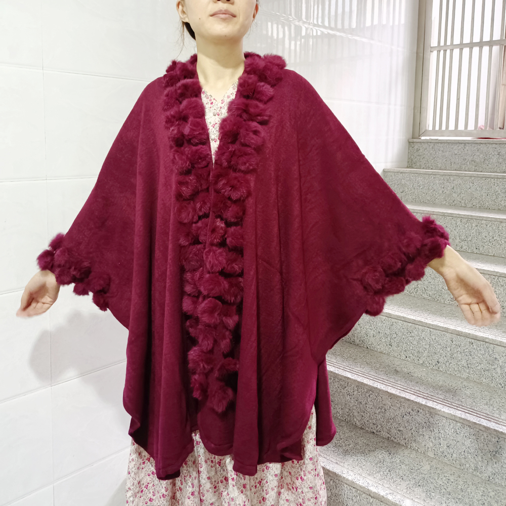 Trend Women Rabbit Fur Poncho Shawl Coat Long Knit Cashmere Cape Fur Sweater Pashmina Autumn Winter New