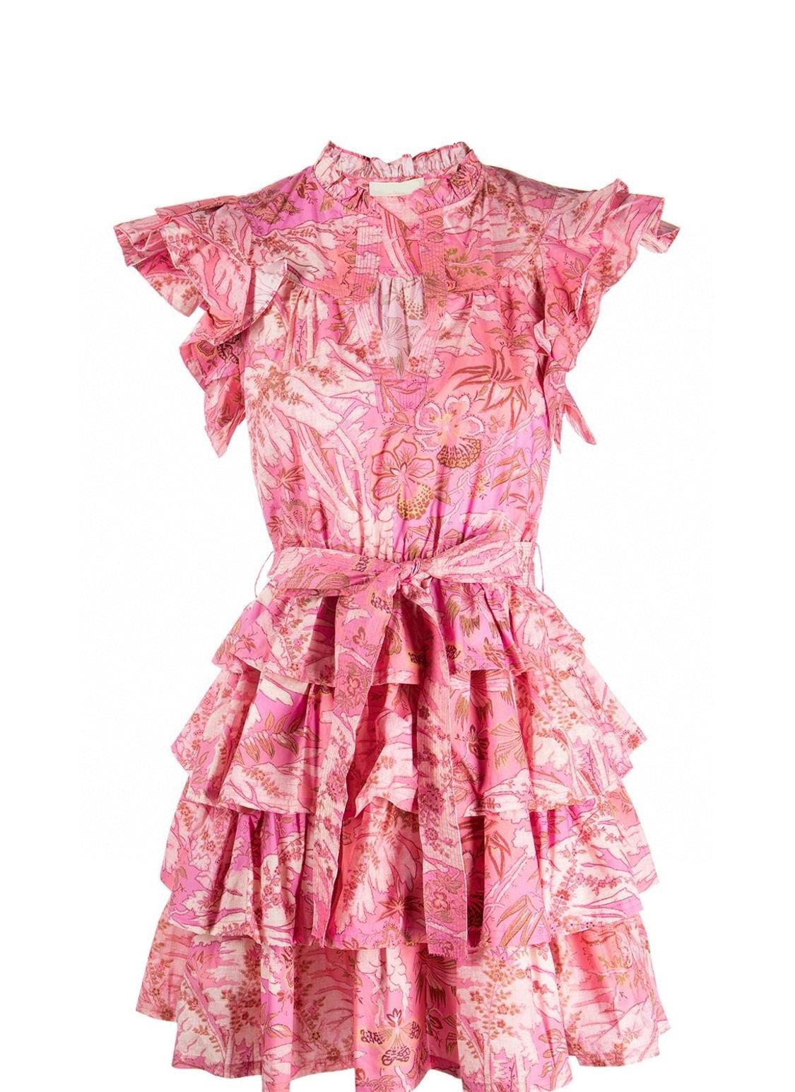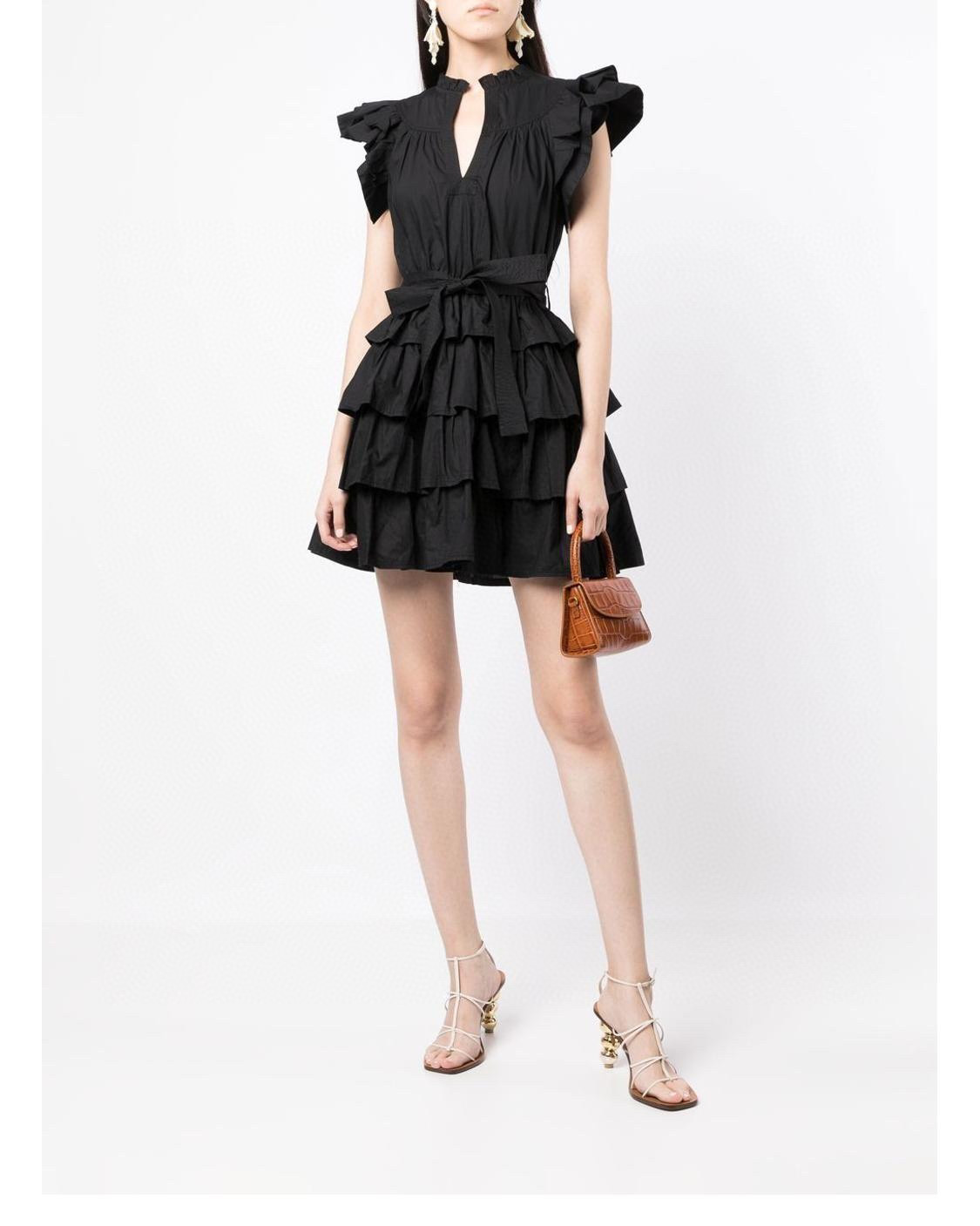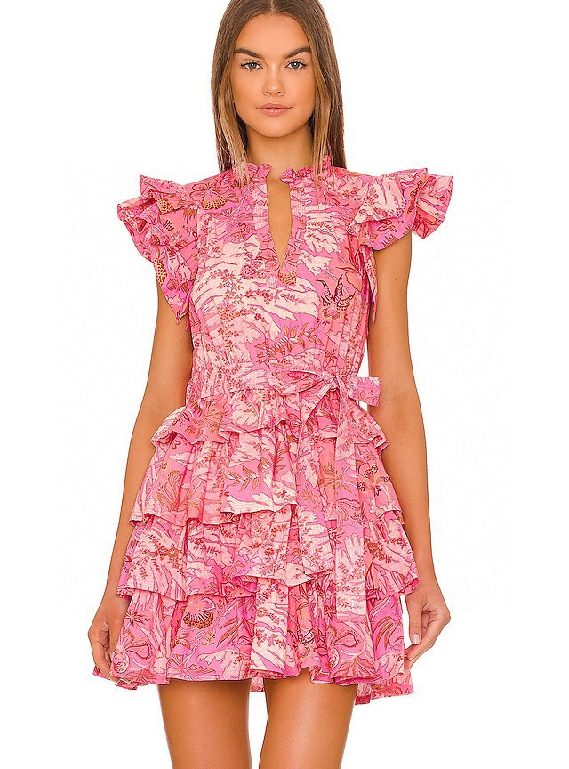 UllaJohns** summer women dress cotton V-neck no sleeve floral printing casual style cascading ruffle minidress