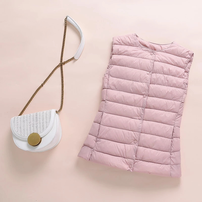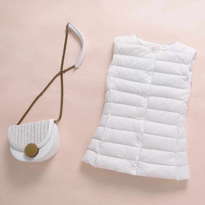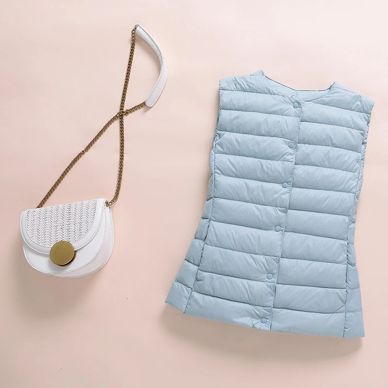 Ultralight Down Vest Women Single-breasted Sleeveless Women Duck Down Waistcoat Puffy Padded Warm Vest Jacket