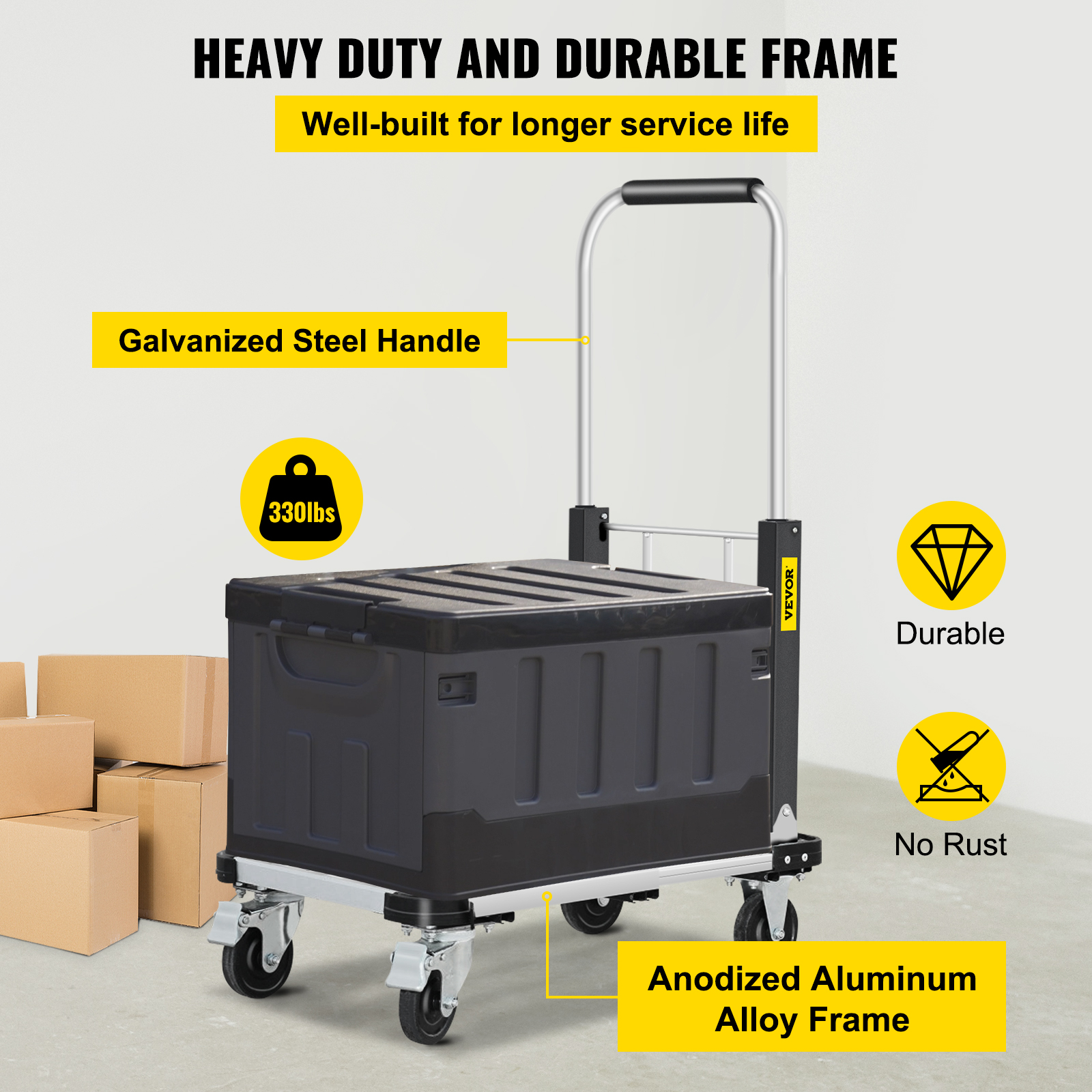 Our folding trolley features premium aluminium alloy material, a lightweight and compact foldable design, and is easy to carry around. VEVOR Folding Cart will become an assistant to help you carry items during shopping, traveling, and moving, saving you time and energy. Look no further than VEVOR's pushcart. Let's get rolling.